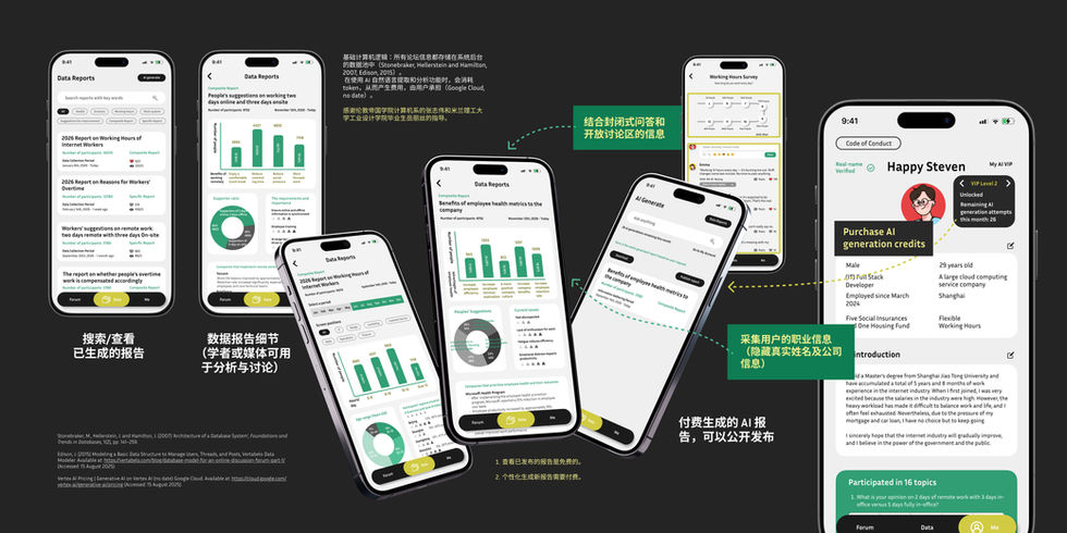 • 在当前社会政治与经济格局下,互联网行业工作节奏与劳动负荷依然突出,政府、企业与劳动者分别在发展、竞争与健康方面面临挑战。经过PESTLE与Causal Layered Analysis分析研究,我提出利用中国高校的号召力与学术影响力建立一个名为“Labour Echo”的收集工人声音的平台。设计了“Labour Echo”APP并制作了十年战略计划图。在合理管理下,“Labour Echo”平台可促进形成数据报告与学术成果,为政府和企业提供参考,促进自下而上与自上而下的良性互动,推动多方共赢的长远发展。